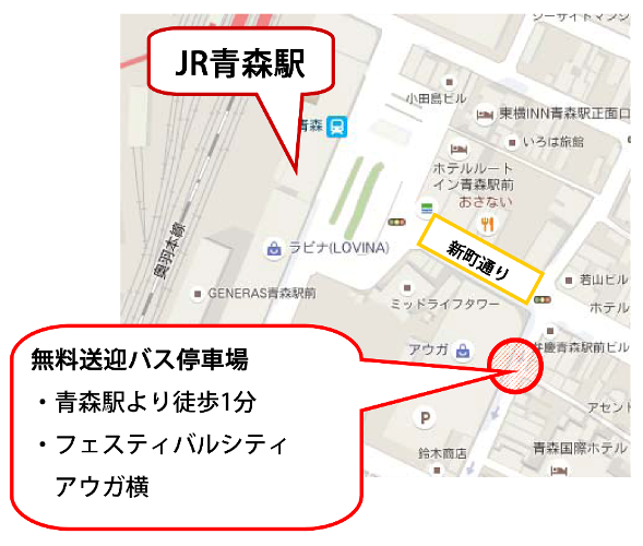 - 無料送迎車に関するご質問(乗り場・時間等)については、本学へお問い合わせください(TEL:017-728-0145)。